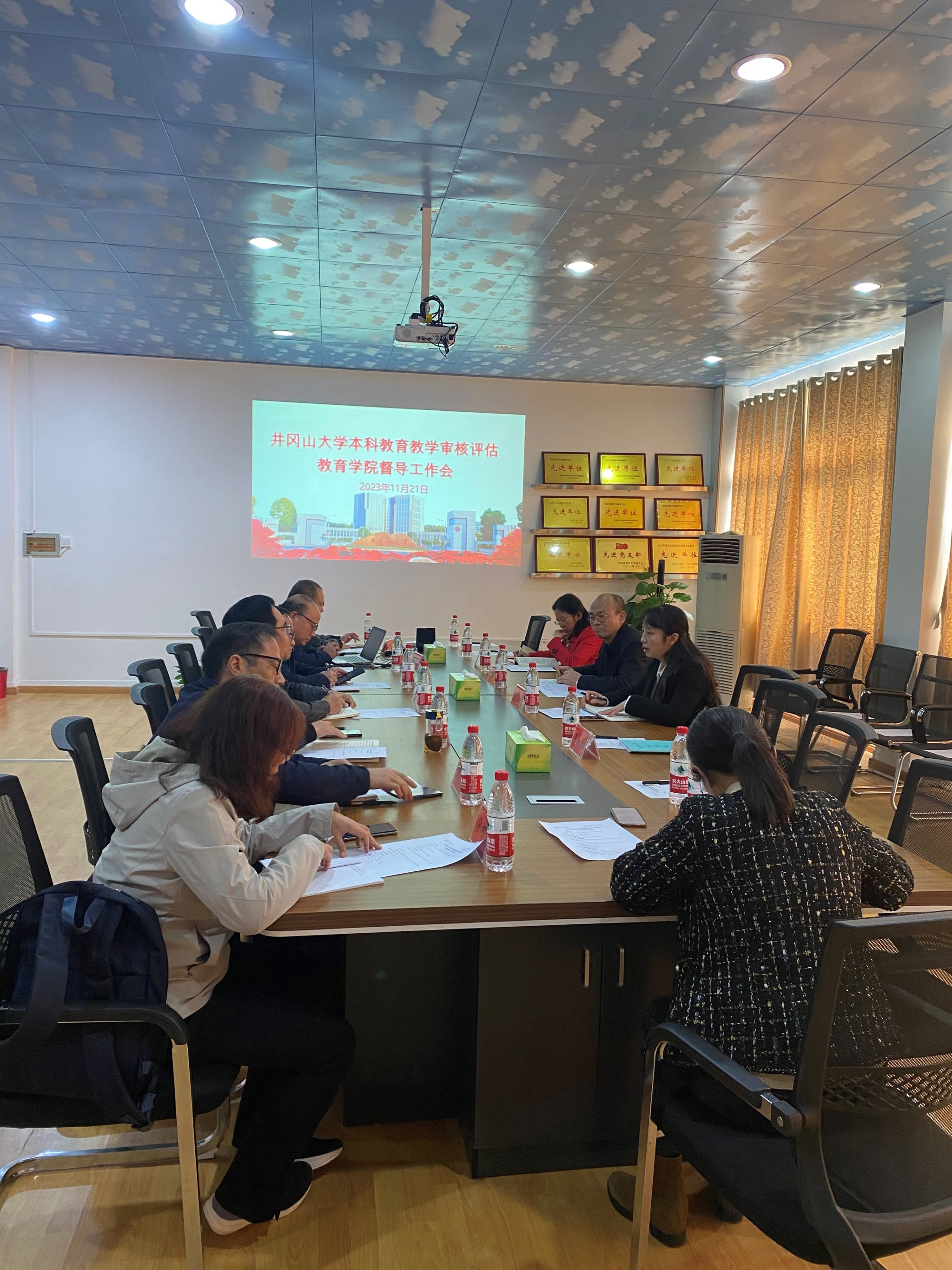 胡忠光院长从学院对审核评估的理解与工作推进思路,学院专业办学特色凝练与建设,学院课程建设规划与实施,加快信息技术与教育教学的深度融合、促进学院教师信息化教学水平提升的举措,学院审核评估工作存在的主要问题等五个方面,向调研组一行做了详细介绍。他表示学院将坚决抓好反馈问题的整改落实,补短板强弱项,提高学院人才培养质量。