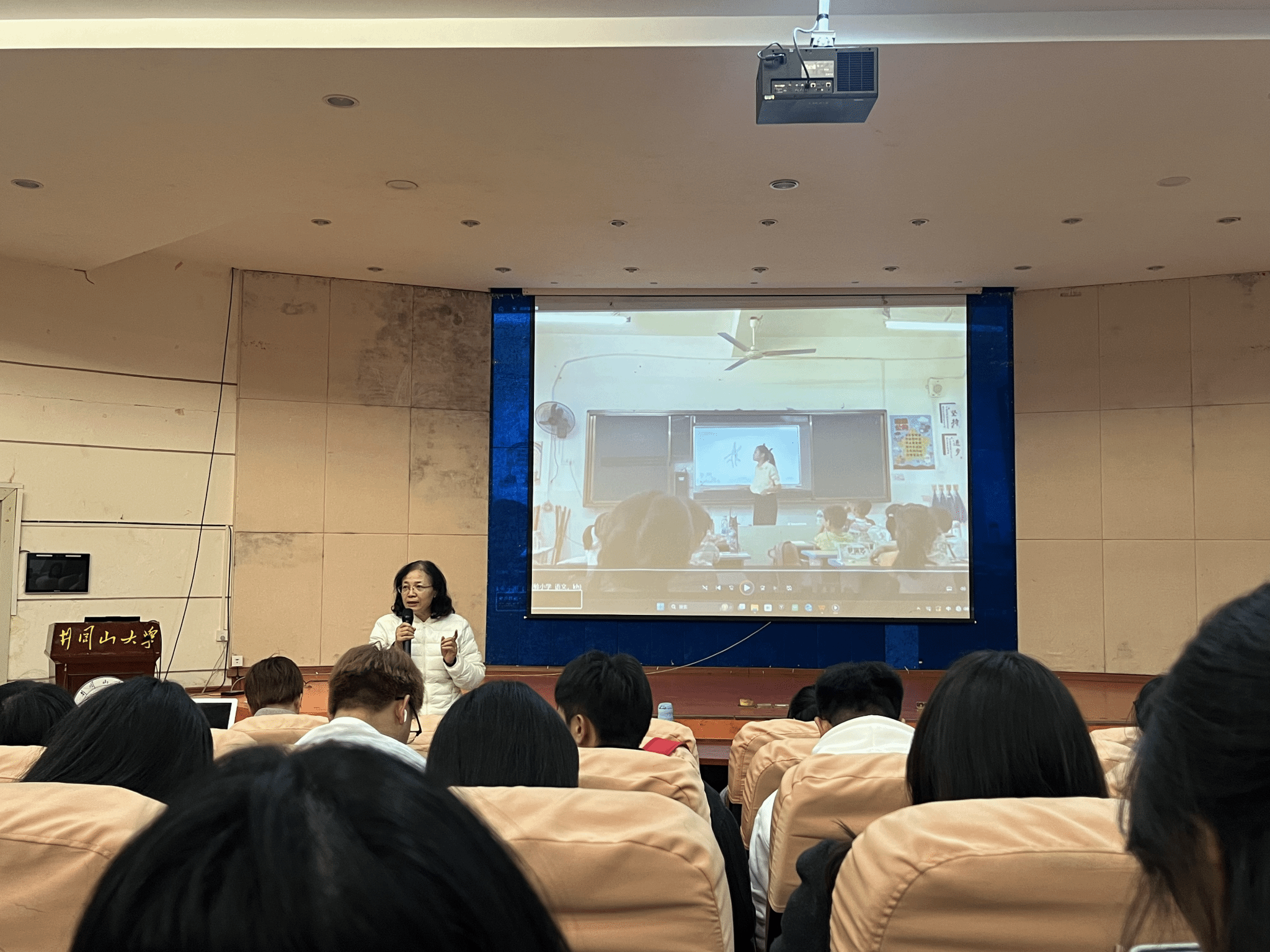 成果展示与教师点评环节亮点纷呈。现场播放了学生见习期间录制的微课视频,白素英等三位带教教师围绕教学设计的逻辑性、课堂实施的有效性、师生互动的适配性等核心维度,进行了精准细致的点评。老师们既肯定了微课中的创新亮点与扎实基础,也直指存在的问题与不足,并给出了具体可操作的改进建议,为学生的专业成长指明了清晰方向。