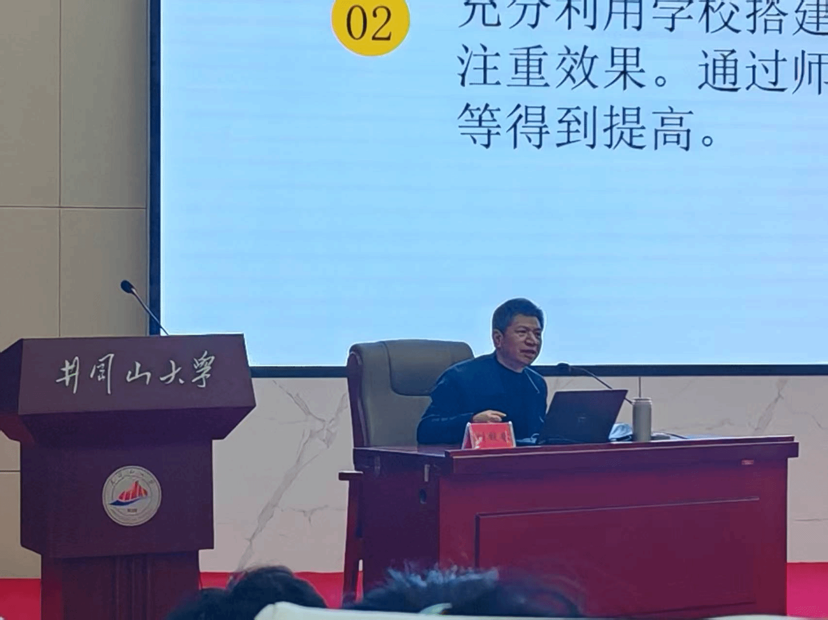 随后,刘细平聚焦 “教师专业化发展” 核心议题,为学子们拆解专家型教师的成长秘诀。他强调,教师的专业提升并非一蹴而就,而是要在日复一日的课堂实践中打磨技能,在常态化的教学反思中总结经验,在深耕教研的过程中实现专业进阶。他深入浅出的讲解、鲜活生动的案例,以及与现场参会者的积极互动,让学子们对教师职业发展有了更清晰的认知。