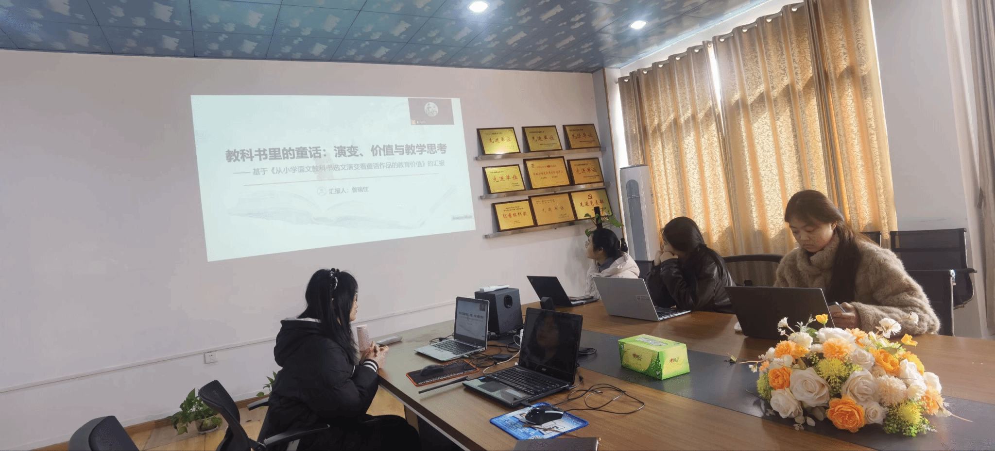 曾瑞佳以《教科书里的童话:演变、价值与教学思考》为主题汇报,整体汇报结构完整、逻辑连贯,严格按照规范脉络梳理论文核心内容,提炼核心要点,展现出扎实的论文梳理与框架搭建能力。但其汇报短板较为突出,个人看法与教学思考部分多为浅层次常规教学建议,缺乏专业学术性思考,研究深度不足,周老师针对性提出强化学术思维、深挖研究内涵的改进意见。