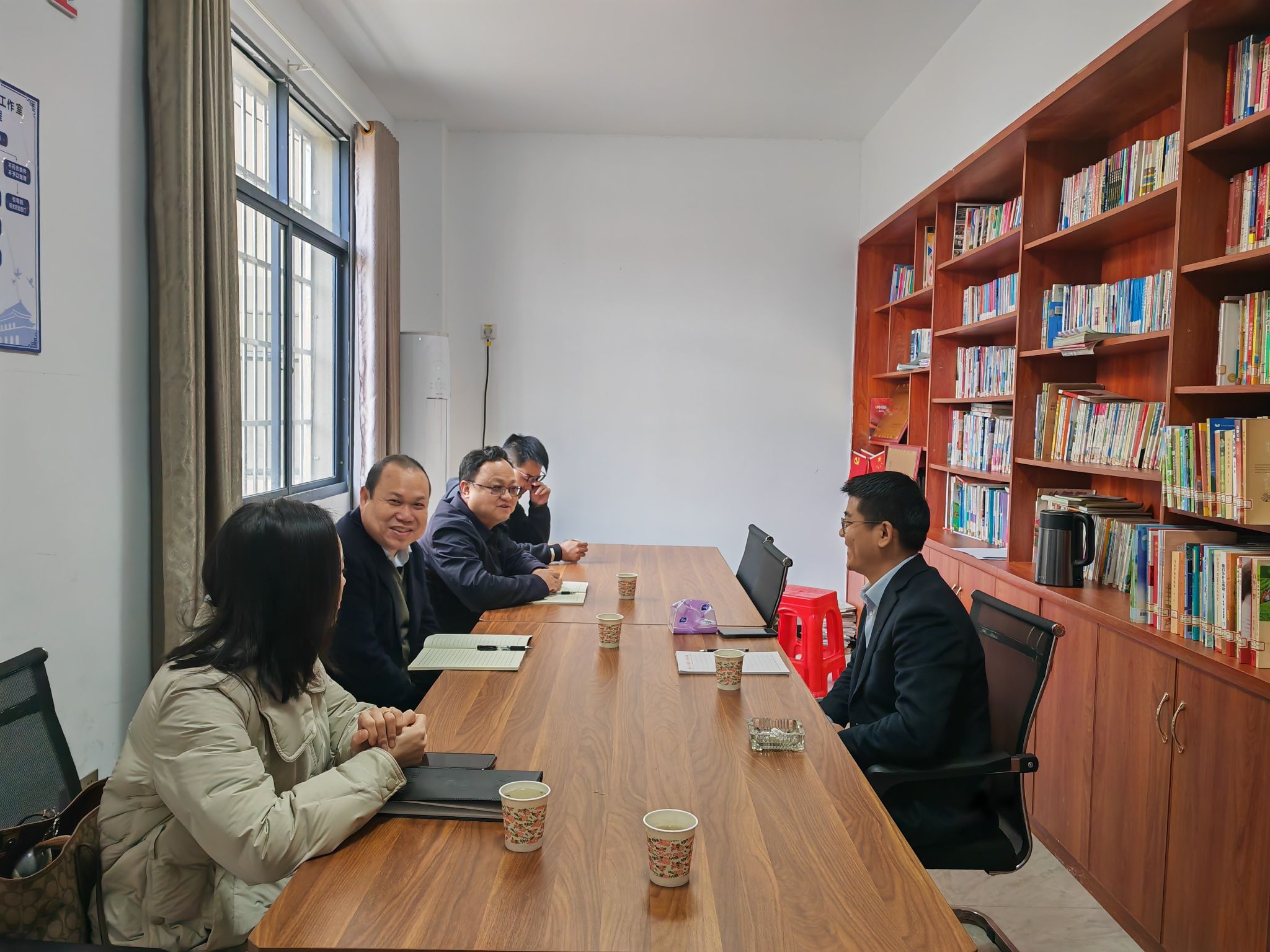 2024年3月8日上午,教育学院院长胡忠光一行5人赴青原区河东街道大路村党支部联系对接,商讨基层党建结对共建工作。