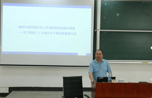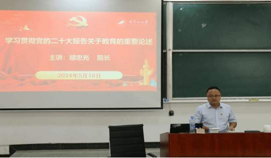 党课中,胡忠光院长结合自己的研究和教育实践经验,深入浅出地为学员们讲述了新时代教育工作者的工作目标,强调要坚持为党育人,为国育才,着力造就拔尖创新人才,为教育强国建设贡献力量。