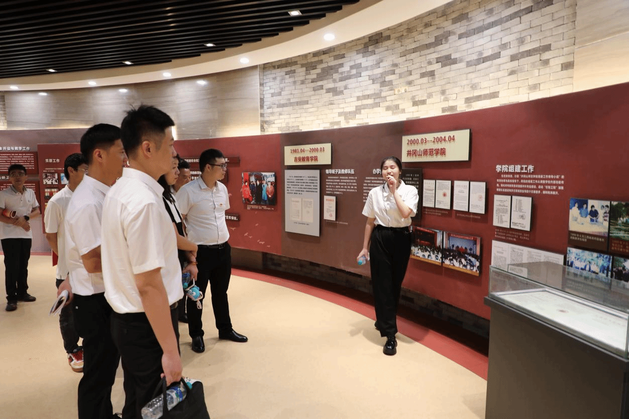 在井冈山大学校史馆,师生党员们认真聆听讲解员的介绍,详细了解了井冈山大学的创建背景、发展历程以及在不同历史时期为国家和社会所做出的贡献。特别是对学校在不断优化提升综合办学能力、培养了大批优秀人才的历史给予了高度评价。