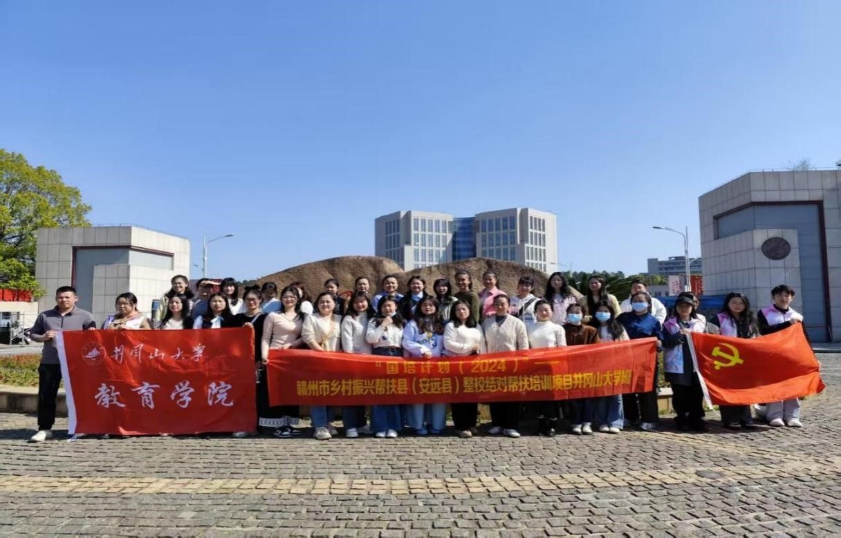 3月21日,在井冈山大学映山红文化艺术节启幕之际,教育学院第三党支部与“国培计划(2024)”——赣州市(安远县)整校结对帮扶培训项目的教师们共同开启了一段别开生面的“红色文化浸润之旅”。