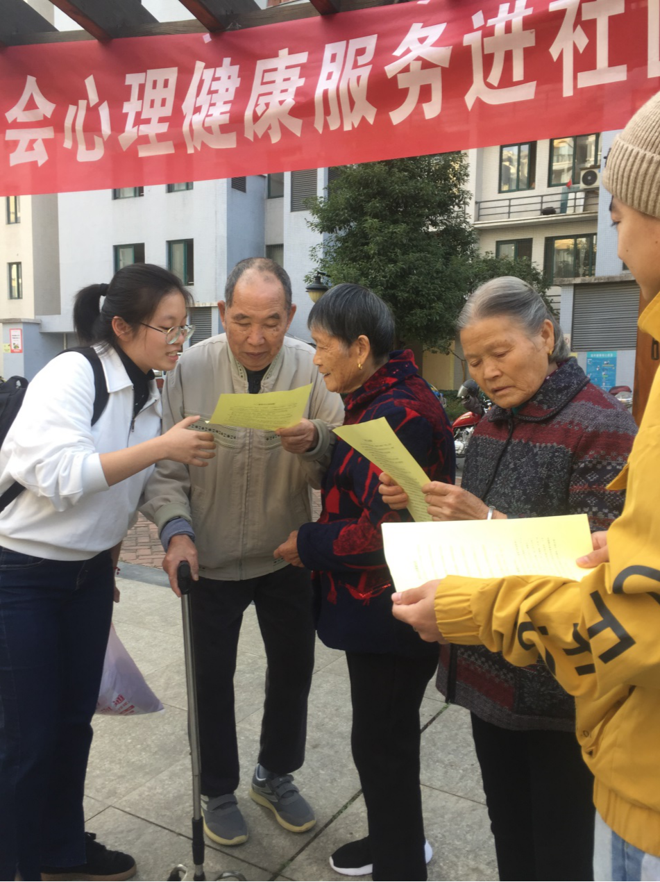 活动结合社区老年人心理健康需求,通过发放心理健康科普宣传单、与老年人面对面交流谈心、心理测评等多种形式,就老年人常见的心理健康问题进行一对一健康宣传、帮扶。活动深受社区居民的欢迎,现场气氛热烈,社区老年人热情高涨,大家争先恐后地就自己关心的心理问题如:老年人抑郁、孤独感、身心疾病等向在场的教师党员咨询求助,还有不少高龄老人自发到活动现场现身说法介绍自己的养生经和长寿经。