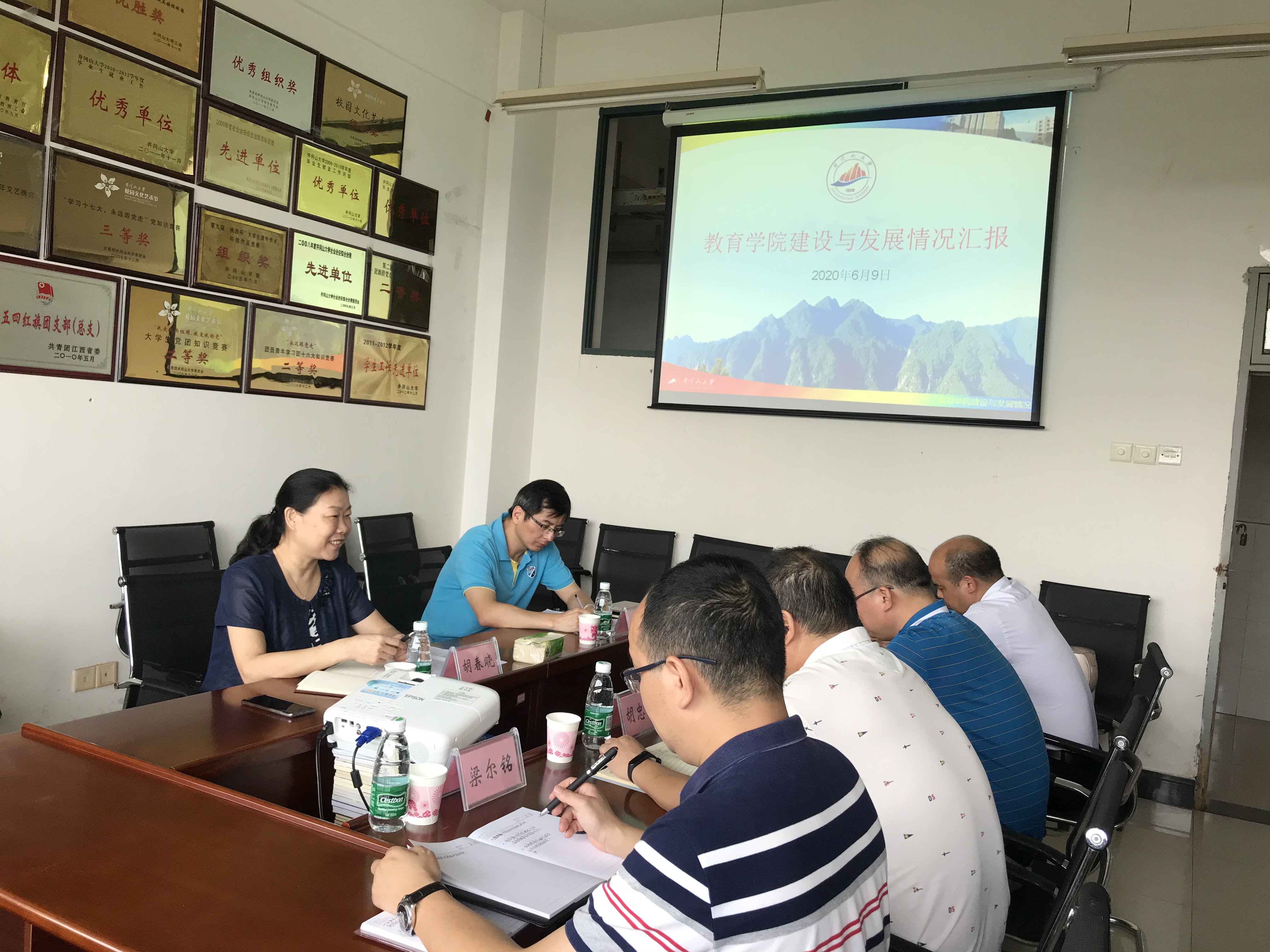 2020年6月9日,井冈山大学党委书记胡春晓同志莅临我院调研指导,校党委统战部部长、党委(校长)办公室主任肖洪海陪同。教育学院党委书记曾学锋、副院长胡忠光、党委副书记习军明、副院长梁尔铭及各科室负责人参加了本次调研会。