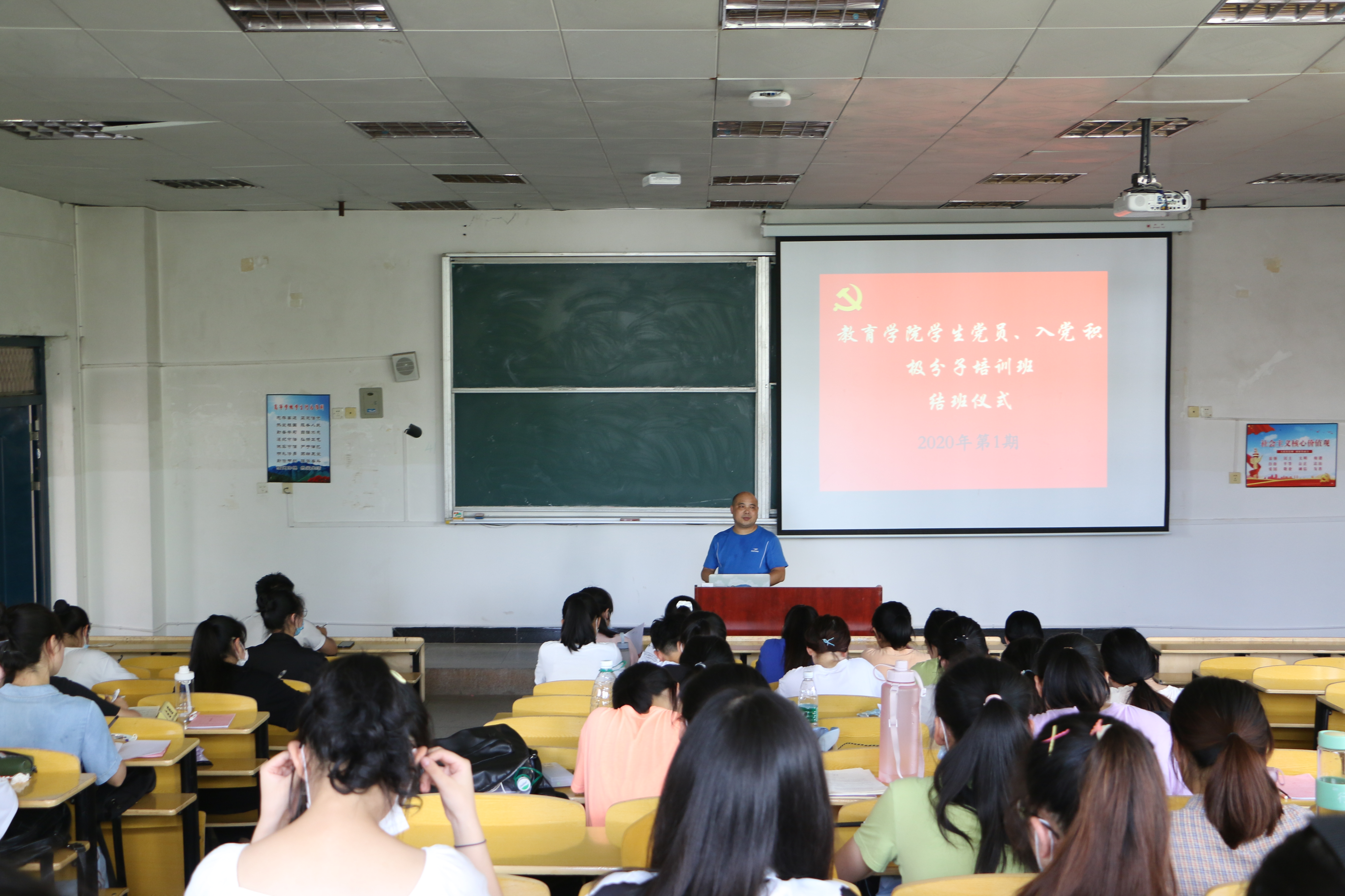 6月14日下午,教育学院党委2020年第1期学生党员、入党积极分子理论学习专题培训班结班仪式在5栋204教室举行。学院党委副书记习军明出席并讲话,全体非毕业生党员、入党积极分子共80余人参加,专职组织员余树英主持。
