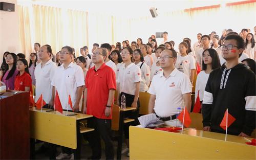直播开始前,全体人员共唱《我和我的祖国》。阅兵直播开始时,全体起立,奏唱国歌。随后,大家全神贯注地倾听习近平总书记作重要讲话。讲话中,习近平总书记讲述了在中华人民共和国成立70年来的风雨历程中中国人民所做出的伟大牺牲和不懈奋斗;同时坚定了前进征程上我们要继续坚持走中国特色道路的立场。最后,习近平总书记激励大家不忘初心、牢记使命,为实现中华民族伟大复兴的中国梦而努力奋斗。