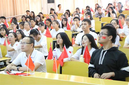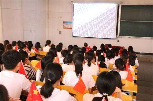 为了庆祝中华人民共和国成立70周年,增强师生对国家的认同感与归属感,教育学院于10月1日上午10:00组织学生在5栋308集中收听收看了庆祝中华人民共和国成立70周年阅兵仪式直播。教育学院副院长胡忠光、副院长梁尔铭、部分师生党员及学生代表共130余人集中收听收看。学院院长彭春妹、党委副书记习军明参加学校集中收听收看活动。