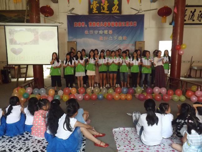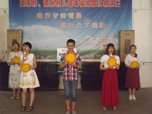 活动中,支部的学生党员结合应用心理学专业知识与小朋友们进行交流,并对他们的心理、性格状况进行分析引导。随后,学生党员与其他的志愿者在高家村祠堂里同高家村和黄腴村的留守儿童们共同举办了一场“牵手相伴·共享阳光”幸福家园汇报演出。