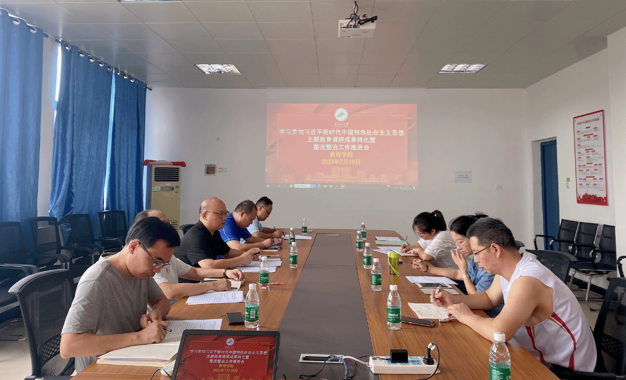 7月19日上午,教育学院召开学习贯彻习近平新时代中国特色社会主义思想主题教育调研成果转化暨整改整治工作推进会。院党委书记、主题教育领导小组组长曾学锋主持并讲话,院党委副书记周光培汇报了学院调研成果转化和整改整治推进情况,院长胡忠光等党委班子成员分别作交流发言,各党支部书记、教职工代表参加会议。