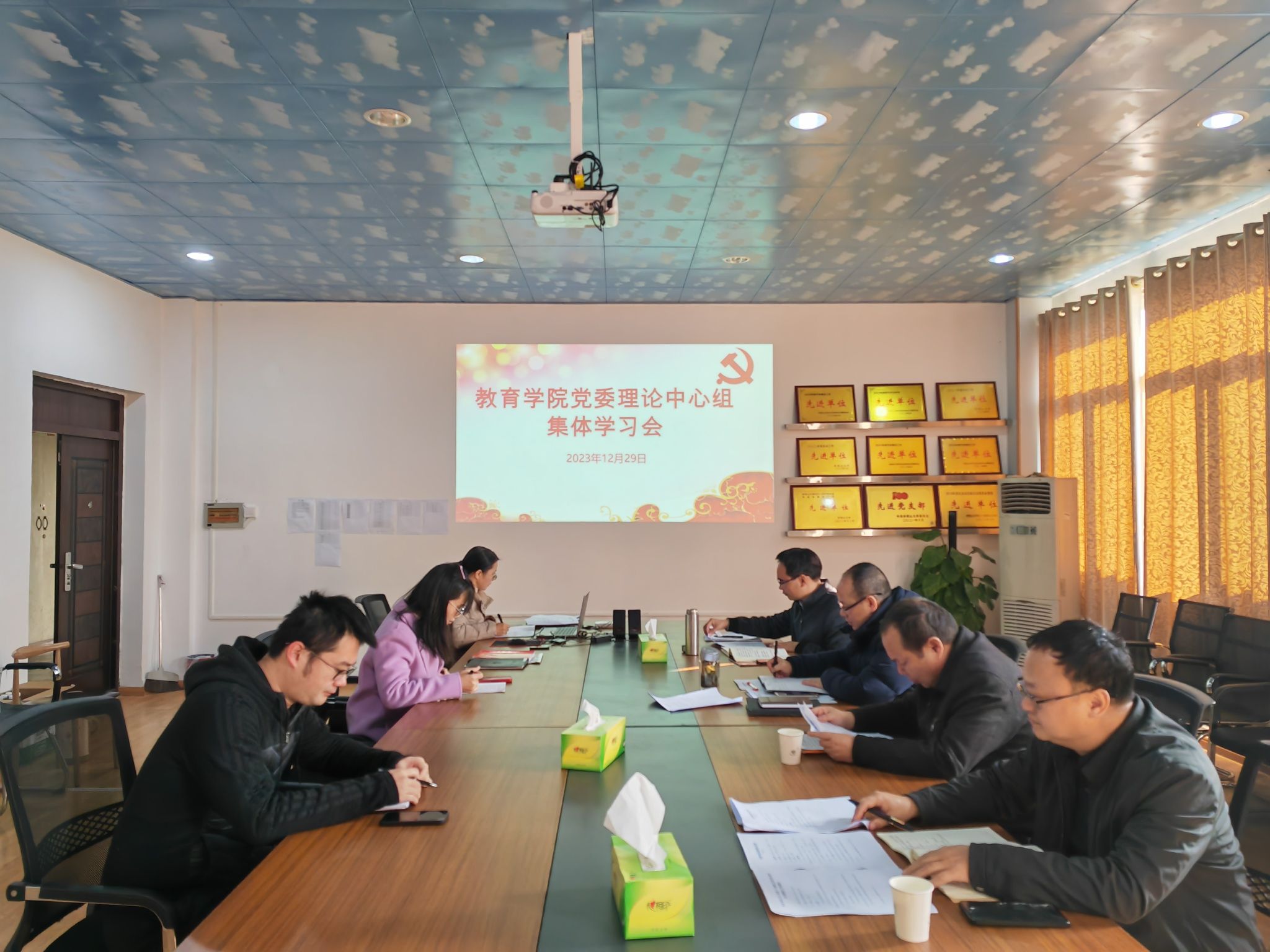 12月29日上午,教育学院召开2023年第13次党委理论中心组集体学习会,集中学习习近平总书记在北京、河北考察灾后恢复重建工作时发表的重要讲话精神和习近平法治思想、关于总体国家安全观和安全稳定、整治形式主义为基层减负的重要论述。院长胡忠光主持,院党委副书记周光培,副院长梁尔铭、于文军,各科室党员负责人、各党支部书记参加。