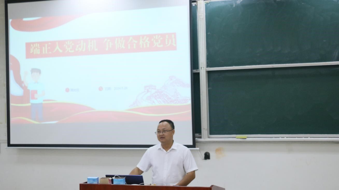 结班仪式开始前,学院党委副书记周光培以《端正入党动机,争做合格党员》为题,从充分认识入党积极分子专题学习的重要意义、中国共产党的三大历史贡献、树立正确的入党动机、如何以实际行动争取早日入党等四个方面,给学员们讲授专题党课。
