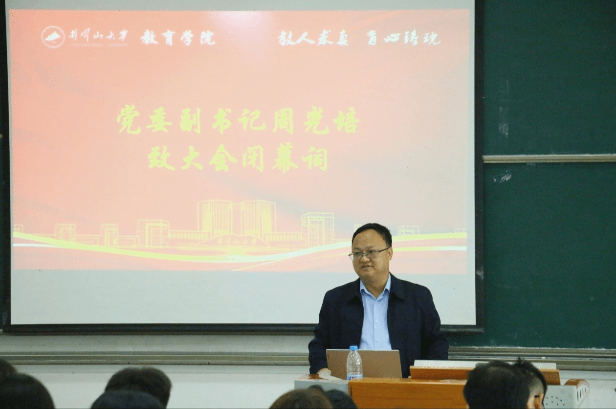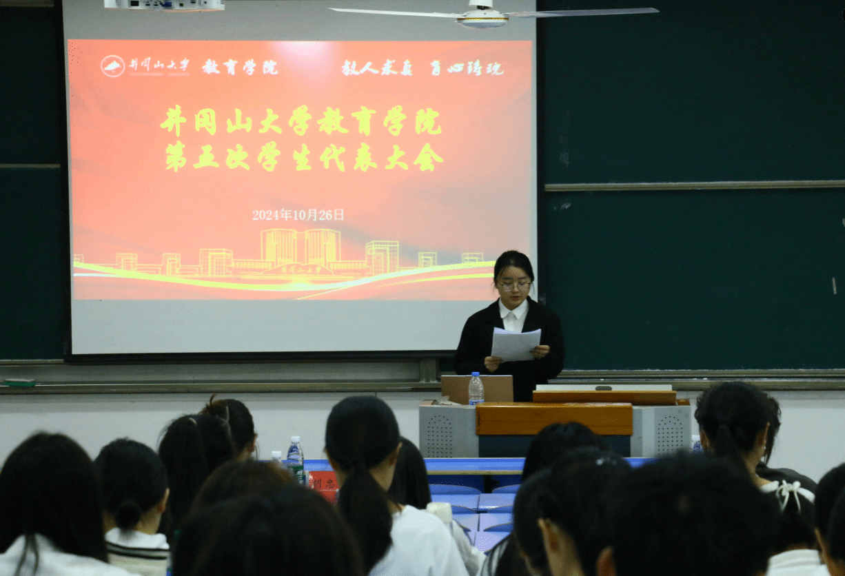 2024年10月26日上午,井冈山大学教育学院第五次学生代表大会在9栋108室顺利召开。教育学院院长胡忠光、党委副书记周光培、副院长梁尔铭、团委负责人袁玮键、井冈山大学校主席团成员吴新心、政法学院执行主席邹怡彤、外国语学院学生兼职团委副书记易罗丽、艺术学院主席团成员李月楼作为嘉宾出席,教育学院100余名学生代表参会。本次会议由22小教1班朱建江、23小教1班姜宇杰主持。