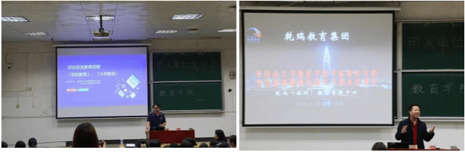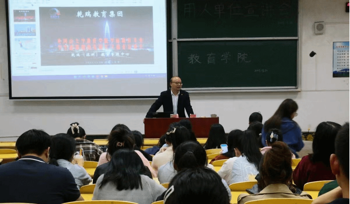 为拓展毕业生就业渠道,促进我院2024届毕业生更早更好就业,11月10日下午,教育学院在5栋105教室举办2024届毕业生用人单位校园招聘专场宣讲会,邀请深圳京发教育科技有限公司、深圳市新舟教育集团和乾瑞(深圳)教育管理中心三家用人单位进行招聘宣讲。学院相关领导和老师及2024届毕业生共计100余人参加。