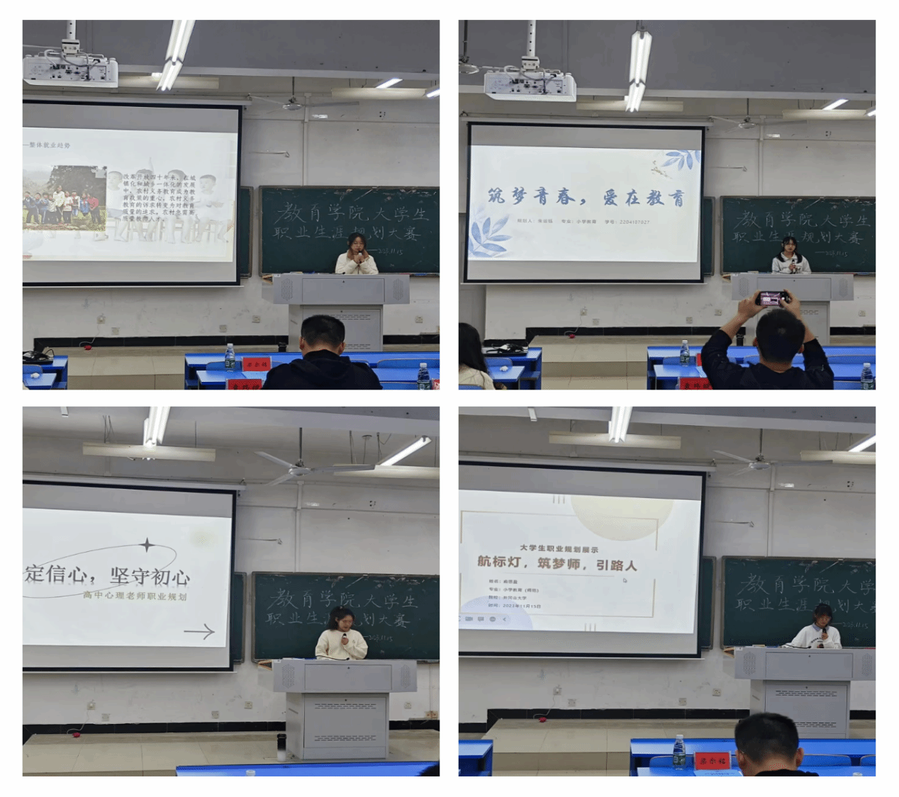 经过激烈角逐,在成长赛道,22心理班谢子颖同学获金奖、22小教3班朱运钰同学获银奖、22小教3班陆雪莲、22小教1班王奕同学获铜奖;在就业赛道,21小教1班王文超同学获金奖、21小教2班柳淑灿、王格同学获银奖、21小教3班陶怡玲同学、21小教4班范子煜同学、21小教2班王娜娜同学获铜奖。