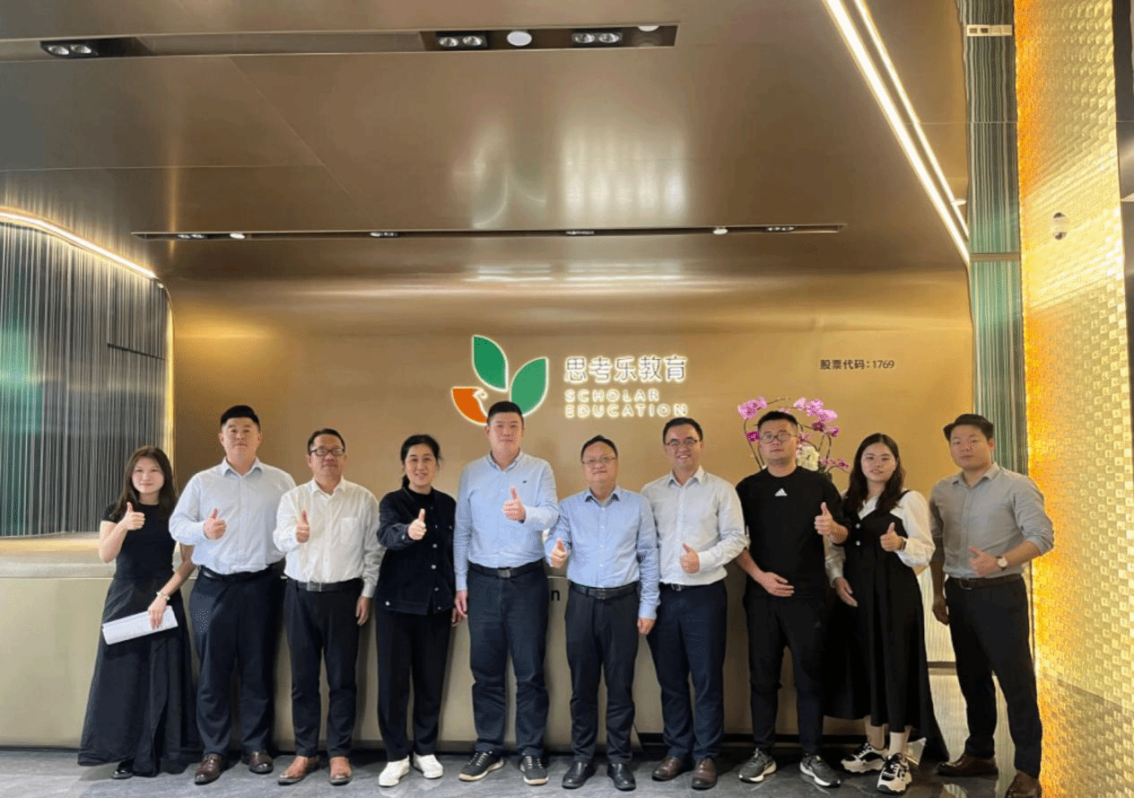 深圳思考乐教育有限公司是一家上市公司,有3000多名员工,辅导了超过10万名学生,实力非常雄厚,为毕业生提供的待遇比较优厚,目前招收了我校2025届毕业生近20名。彭青、胡正佩在集团人力资源总监柯锦康的陪同下参观集团新总部,了解了集团的课程体系建设、教学技术创新、师资队伍培养等,对思考乐教育的业务形态与发展规模有了直观的了解。思考乐集团还举办了洽谈会,校企双方围绕人才培养、实习就业基地设立等核心议题展开了充分探讨,公司对已经录用的我校毕业生的素质和能力给予了充分肯定,表示将加大对井冈山大学2026届毕业生的录取占比。洽谈会上,胡正佩代表学校为思考乐集团授予了实习实训基地牌匾。