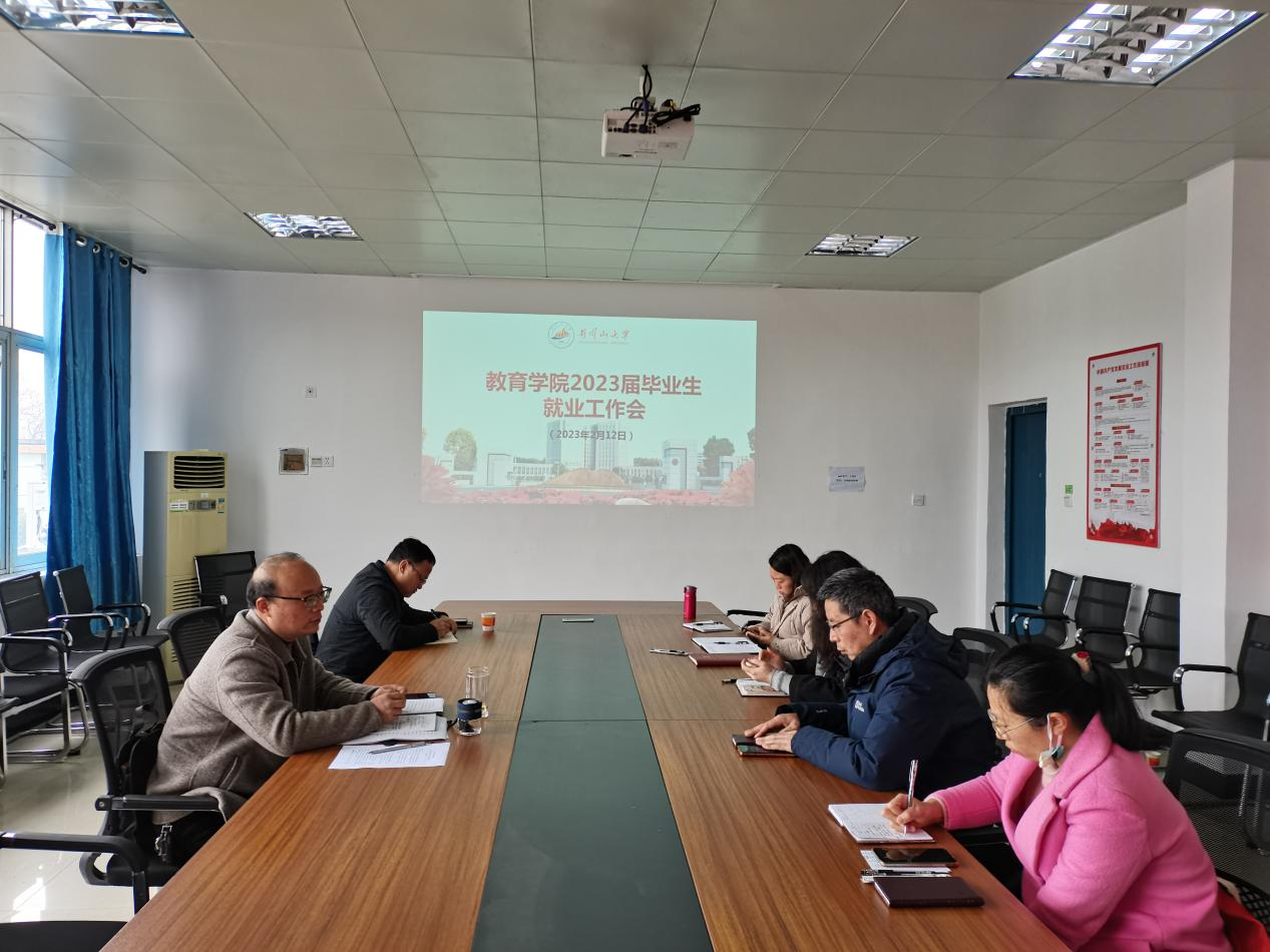 为深入贯彻落实学校2023届毕业生就业创业工作会议精神,2月12日上午,教育学院在第二教学楼401室召开新学期2023届毕业生就业创业工作推进会。学院党委书记曾学锋主持并讲话,党委副书记周光培、全体2023届毕业生班主任、就业干事参加。
