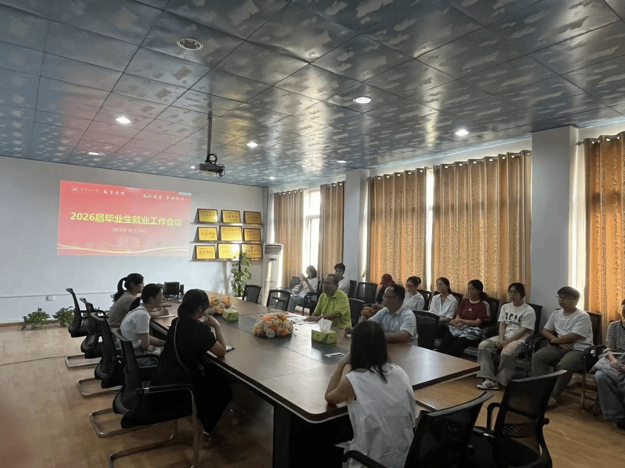 为提前谋划、统筹部署学院2026届毕业生就业工作,10月16日下午,教育学院在第三教学楼三楼会议室召开了2026届毕业生就业工作会议。院长胡忠光出席会议,各毕业班班主任、辅导员及有考编意愿的学生代表参加会议。会议由院党委副书记周光培主持。