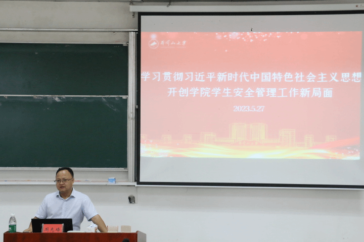 结班仪式前,院党委副书记周光培以“学习贯彻习近平新时代中国特色社会主义思想 开创学员学生安全管理工作新局面”为题给培训班学员上专题党课。党课介绍了学校学院内部管理工作体系构架,由浅入深,逐步引入到“学生安全管理工作”,结合实际案例进行讲解,帮助大家更加深入学习理解习近平新时代中国特色社会主义思想内涵,更加深刻认识到应人身安全、意识形态安全、心理健康安全等方面的重要性。