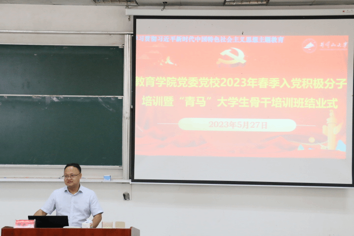 5月27日上午,教育学院党委党校2023年春季入党积极分子培训暨“青马”大学生骨干培训班结班仪式在第五教学楼104室举行。院党委副书记周光培出席并作结班讲话,全体学生党员、入党发展对象、非毕业班入党积极分子、团学骨干等140余人参加。