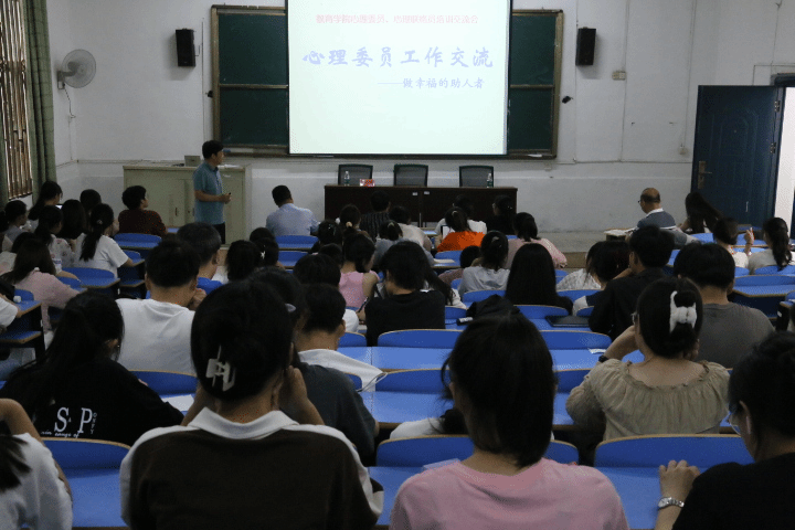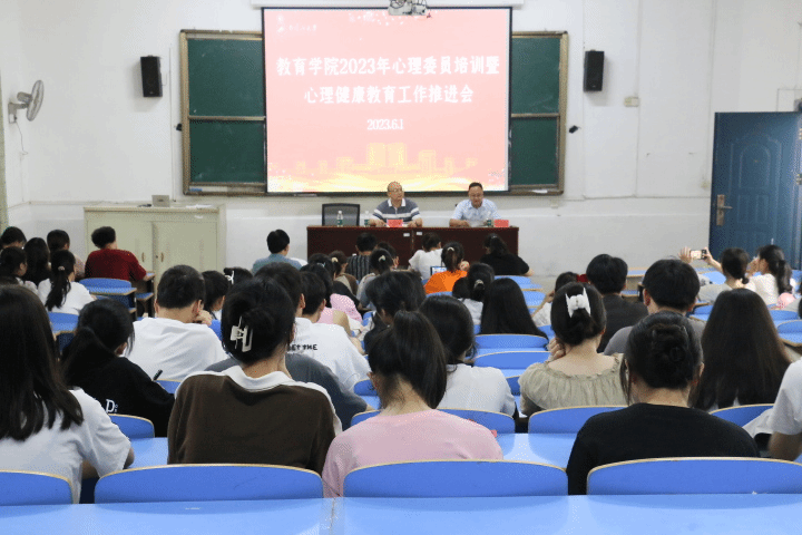 为全面贯彻落实新时代学生心理健康工作专项行动计划,切实提升学院师生心理健康意识和素养,6月1日下午,教育学院在2栋209教室召开2023年心理健康工作专题部署会和班级心理委员及宿舍心理联络员培训会。院党委书记曾学锋出席并讲话,副书记周光培主持,学院应用心理学教研室陈剑锋副教授作专题辅导,学院辅导员、班主任、学院心理委员、宿舍心理联络员共计100余人参加。