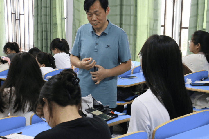 在活动现场,陈剑锋老师与学生进行交流互动