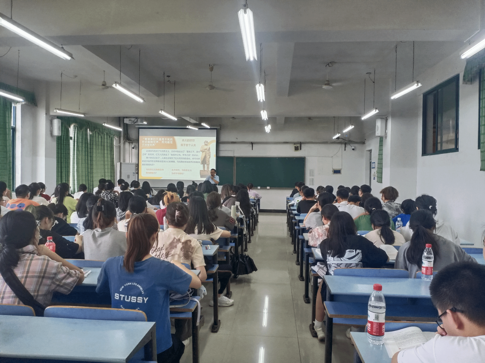 李军副校长和学院领导凝神专注,认真听课,详细做记录,细心观察学生们的学习状态。课间休息,李军副校长和学院领导与授课教师亲切交流,对教师的专业知识和教学能力给予肯定,鼓励教师结合学生学习需求,进一步丰富课堂教学内容,让学生真正学有所获,在学习和生活中自觉学习和运用马克思主义。