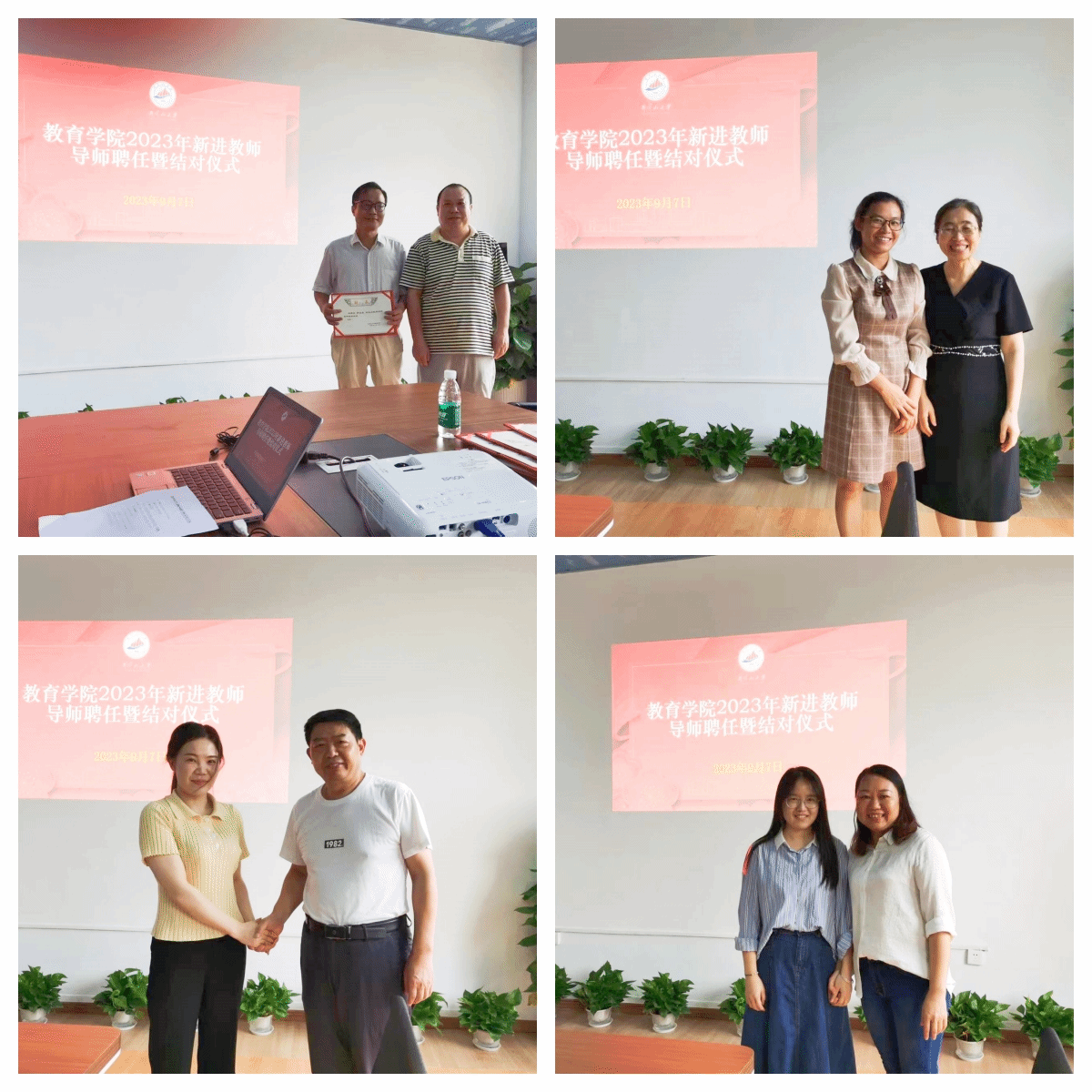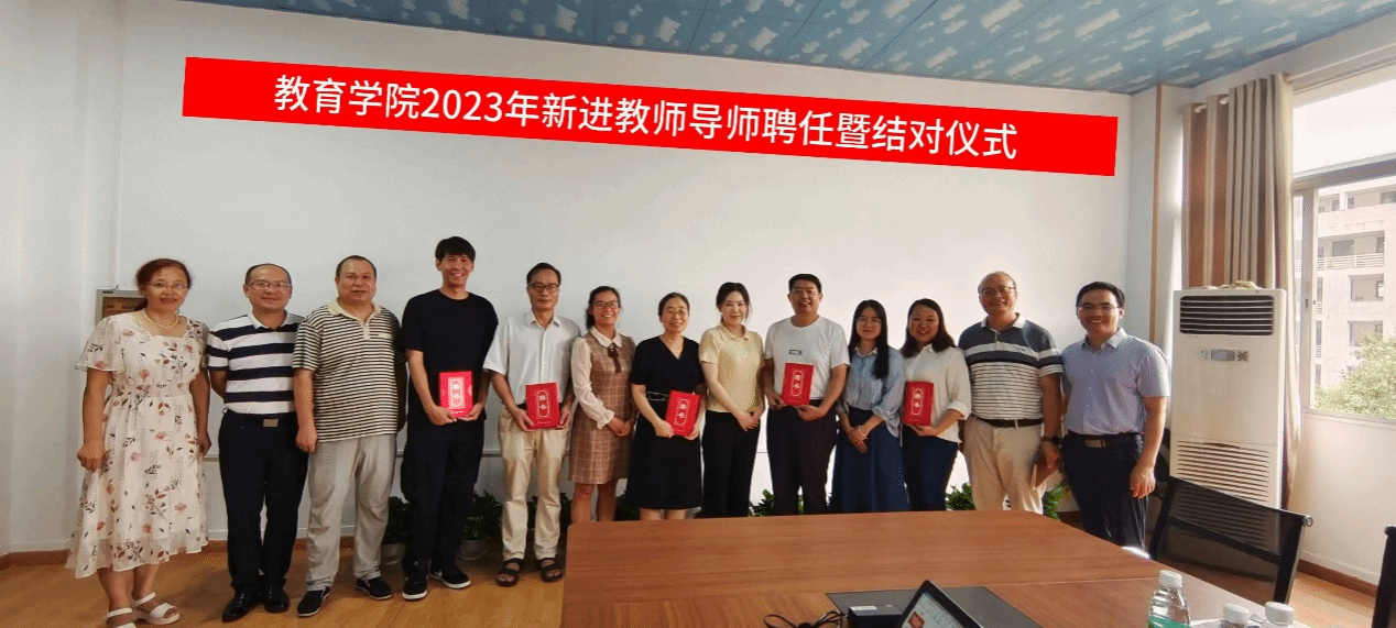 为帮助新进教师适应新角色、融入新环境,尽快适应工作岗位,促进新进教师快速成长及专业提升,2023年9月7日下午4时,教育学院在学院会议室举行2023年新进教师导师聘任暨结对仪式。学院书记曾学锋、院长胡忠光、副院长梁尔铭出席会议,各专业负责人、新进教师及结对导师参加会议。会议由副院长于文军主持。