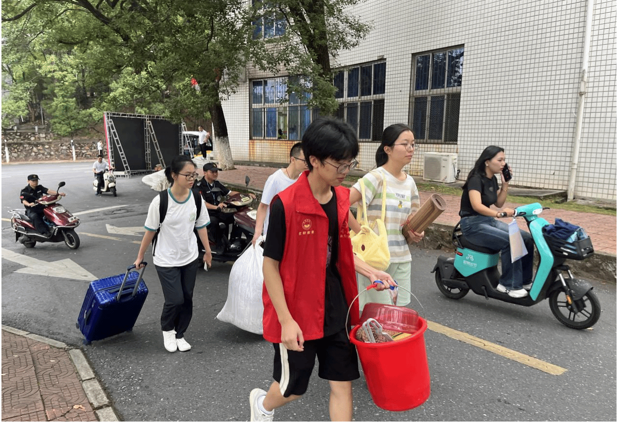 一路上,从西侧大门经园丁湖西路到三栋新生注册点,再到宿舍楼下,红马甲随处可见。搬运行李、指引道路、答疑解惑……新生们在志愿者和班助的细心提醒和引导下,有序地核对信息、领取校园卡、银行卡、宿舍钥匙,办理宿舍登记,完成报道的一系列流程。尽管天空下起了雨,我院志愿者们仍一趟趟不辞劳苦地接送,奔走在报到点和宿舍楼之间,热情周到地服务于每一位新生。