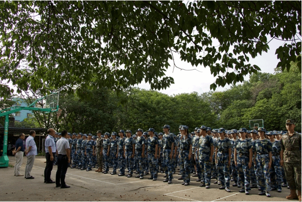 院领导一行走进训练场地,首先向教官了解了当前同学们军训的训练情况,并对教官的悉心教导和辛勤付出表示感谢。学院领导在讲话中指出,军训是以爱国主义为核心的理论与实践相结合的教育模式,同学们要发扬不怕苦不怕累的精神,对自己高标准严要求,为踏入大学的第一课交上满意的答卷。”通过军训锻炼提升同学们的心理素质,增强国防观念,凝聚力量,增进同学们相互了解,促进共同成长。勉励所有新生发扬教育学院优良传统,服从安排,服从指令,展现教院学子良好形象。