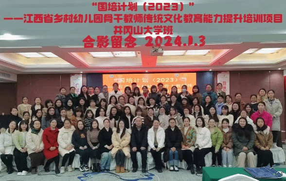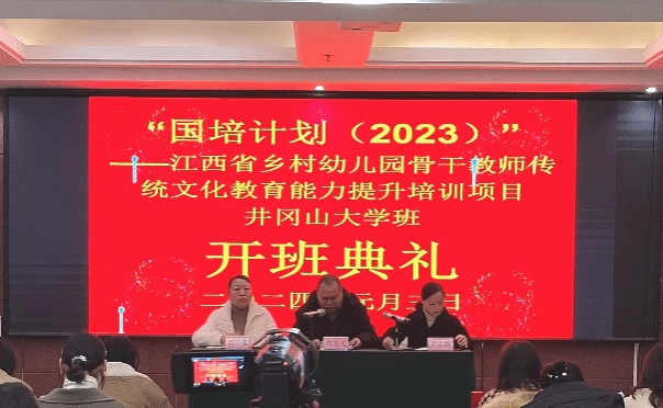 2024年1月3日上午,由教育学院承办的“国培计划(2023)”——江西省乡村幼儿园骨干教师传统文化教育能力提升培训项目举行开班典礼。开班式由学前教育专业负责人刘小霞主持,教育学院院长胡忠光、班主任代表孟晶晶老师出席,来自省内11地市的80位学员参加了开班式。