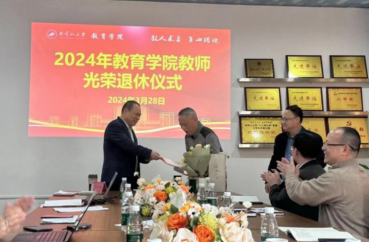 3月29日,教育学院在学院会议室3-303举行2024年教师荣休仪式,欢送李长庚教授,院长胡忠光主持会议,其他班子成员和全院教职工参加。