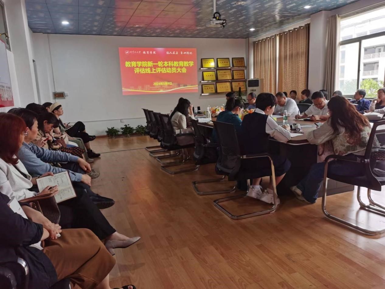 2024年5月9日教育学院在3栋303室召开了“新一轮本科教育教学审核评估线上迎评动员会”。此次会议旨在动员全院师生积极参与到新一轮本科教育教学审核评估工作中,确保评估工作顺利进行,并以此为契机推动学院教育教学质量的全面提升。