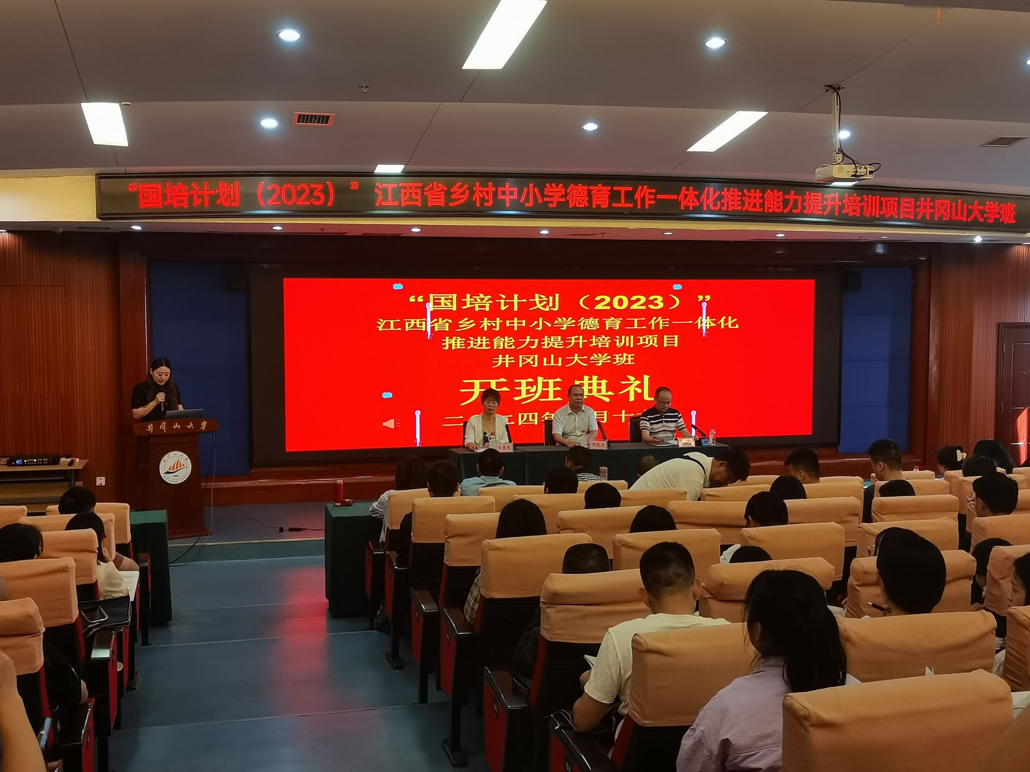 2024年5月16日上午,由井冈山大学教育学院承办的“国培计划(2023)”——江西省乡村中小学德育工作一体化推进能力提升培训项目在井冈山大学顺利开班。井冈山大学教育学院院长胡忠光、副院长梁尔铭出席,班主任代表白素英老师主持,来自江西省各设区市的160名中小学德育工作负责人参加了开班式。