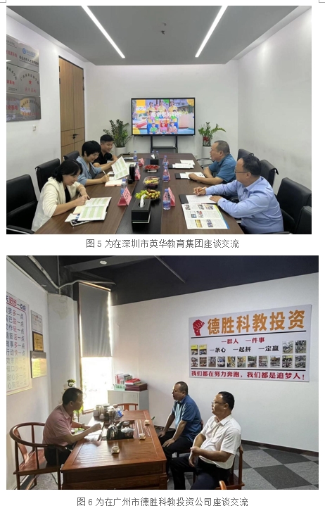 调研考察期间,深圳市乾瑞教育集团、深圳市福田区丽中小学、深圳市英华教育集团、广州市德胜科教投资公司、广州市展翊教育集团等相关单位负责人对我院考察组一行到访表示热烈欢迎并举行座谈交流,介绍了各自单位的企业文化、发展理念、工作环境、薪酬待遇等情况,对学校、学院的人才培养质量给予了高度评价,就毕业生需求、学生实习培养、毕业生就业等问题进行了深入交流。