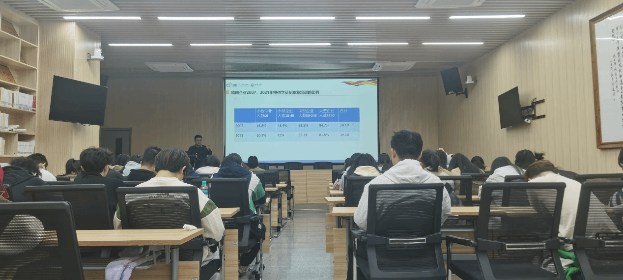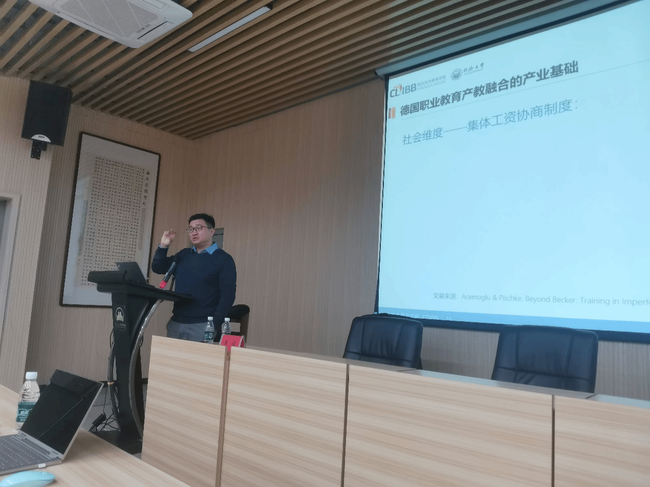 在讲座上,李俊博士从经济社会学视角提出了新的国际比较分析框架,从产业参与职业教育的意愿和能力、学生就读职业教育的意愿和兴趣、制度对产业及学生的影响三个维度剖析了中国、德国和美国的产教关系及其背后的影响因素。同时,李俊博士深入分析了中国职业教育的发展、现状与未来趋势,指出近几年中国职业教育已成为促进就业和经济发展的重要力量。另外,李俊博士还讨论了长三角学生选择职业教育的现状,分析了中、美、德三国职业教育产教融合的困境与挑战。讲座结束后,参会师生就关心和疑惑的问题与李俊博士进行了交流。