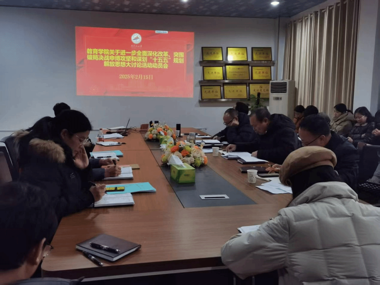 最后胡忠光院长传达学习《井冈山大学关于进一步全面深化改革、突围破局决战申博攻坚和谋划“十五五”规划解放思想大讨论活动方案》,组织开展动员研讨,并部署学院2025年重点工作。