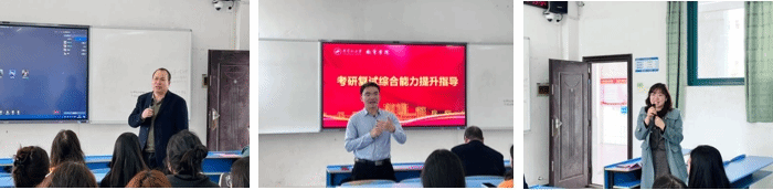 随后,到场的各位老师也为同学们提供了专业的指导意见。胡院长强调了院校调剂找准时机、抓住机会的重要性,也建议同学们充分收集信息,与身边同伴信息共享,积极开展模拟练习,集思广益,同时也应结合专业优势加强自我调整;于院长对初试上岸同学表示祝贺,也鼓励同学们一鼓作气,坚定信心,锚定目标,发挥优势,在面试过程中保持谦逊严谨的态度;曾会珍老师从面试的着装、肢体动作等方面鼓励同学们自信从容。