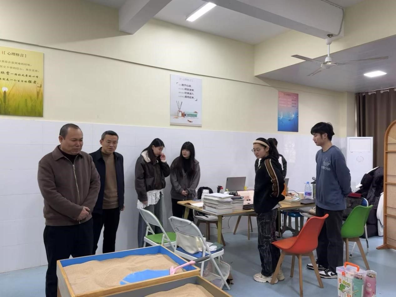 在吉安市阳光学校,院领导、老师看望了正在学校实习的2021级应用心理学专业同学,吉安市阳光学校党支部书记彭振军、副校长罗园对教育学院学子的实习工作给予了充分肯定,希望能与教育学院进一步加强合作,借助学院专业力量,提升学校心理健康教育质量。胡忠光感谢吉安市阳光学校为学院学生提供实习的机会,让学生在实践中提升专业水平,同时,希望未来双方能够加强合作,为学生提供更多的社会实践机会,促进学生全面发展,学院也将充分发挥学科优势,共同努力,为青少年心理健康教育贡献力量。(图/文:彭高丽,审核:邹彬、周光培、胡忠光)