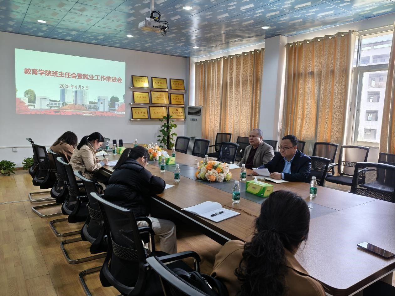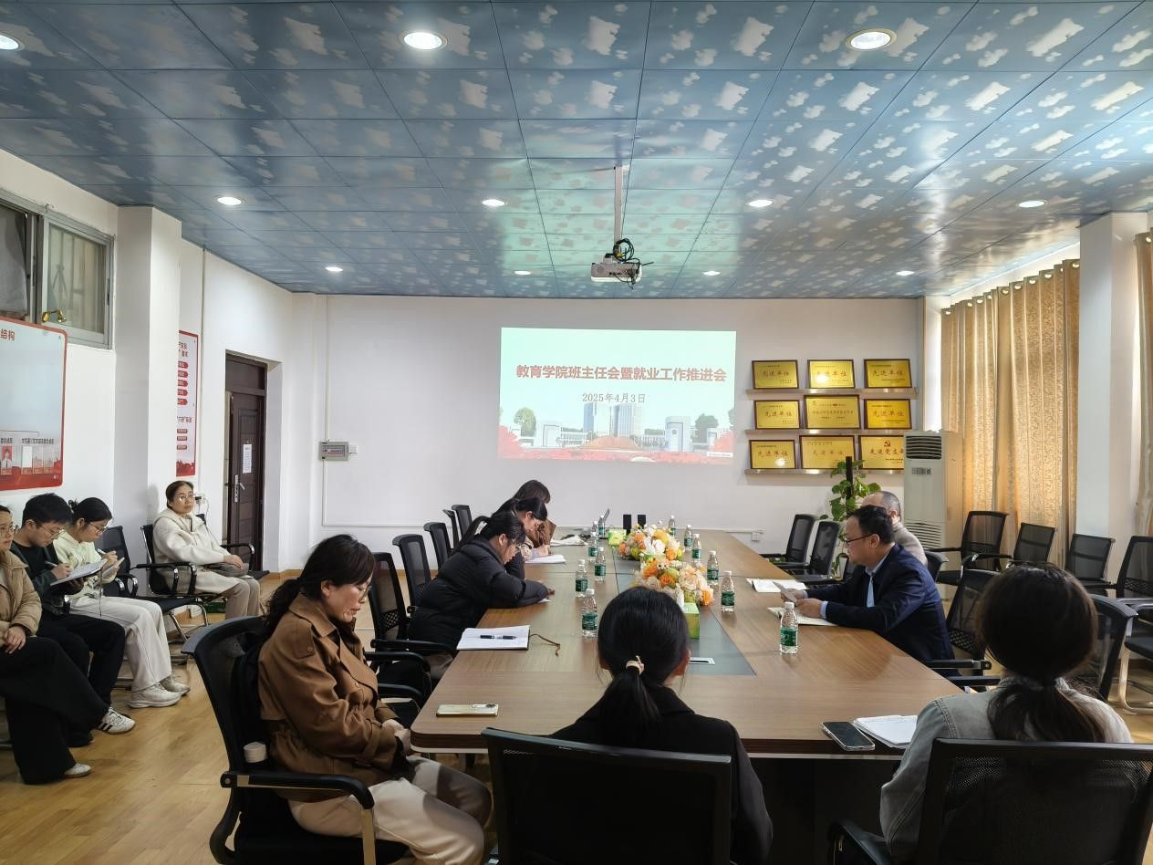 4月3日下午,教育学院在3栋303会议室召开班主任工作会议暨2025届毕业生就业工作推进会,旨在强化班级管理效能,提升班主任工作水平,全力保障毕业生高质量就业。院长胡忠光出席会议并讲话,学院全体辅导员、班主任参会,会议由党委副书记周光培主持。