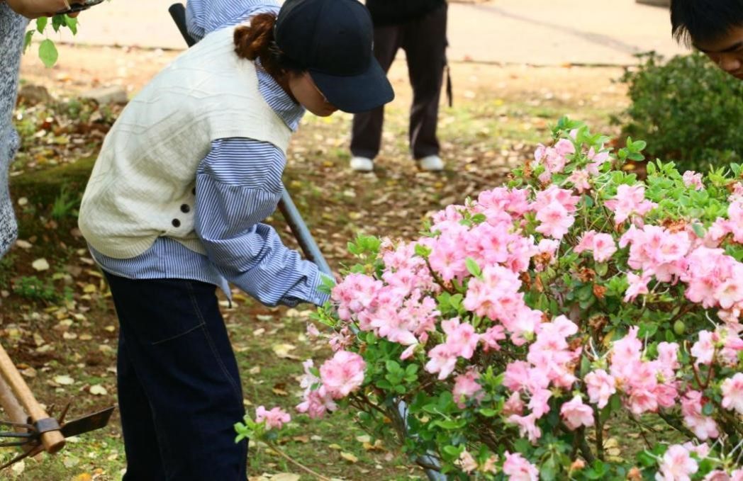 活动伊始,学校后勤工作人员亲身示范种植过程。随后,同学们手持铁锹、锄头等工具,分组协作,大家挥锹铲土,挖出一个个土坑,再填土均匀压实,最后为刚栽种的花苗浇水,让花苗“种得下、养得活、种得好”。一株株映山红花苗扎根,为校园增添了一抹新绿。同学们汗滴土壤,笑容满园。
