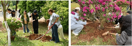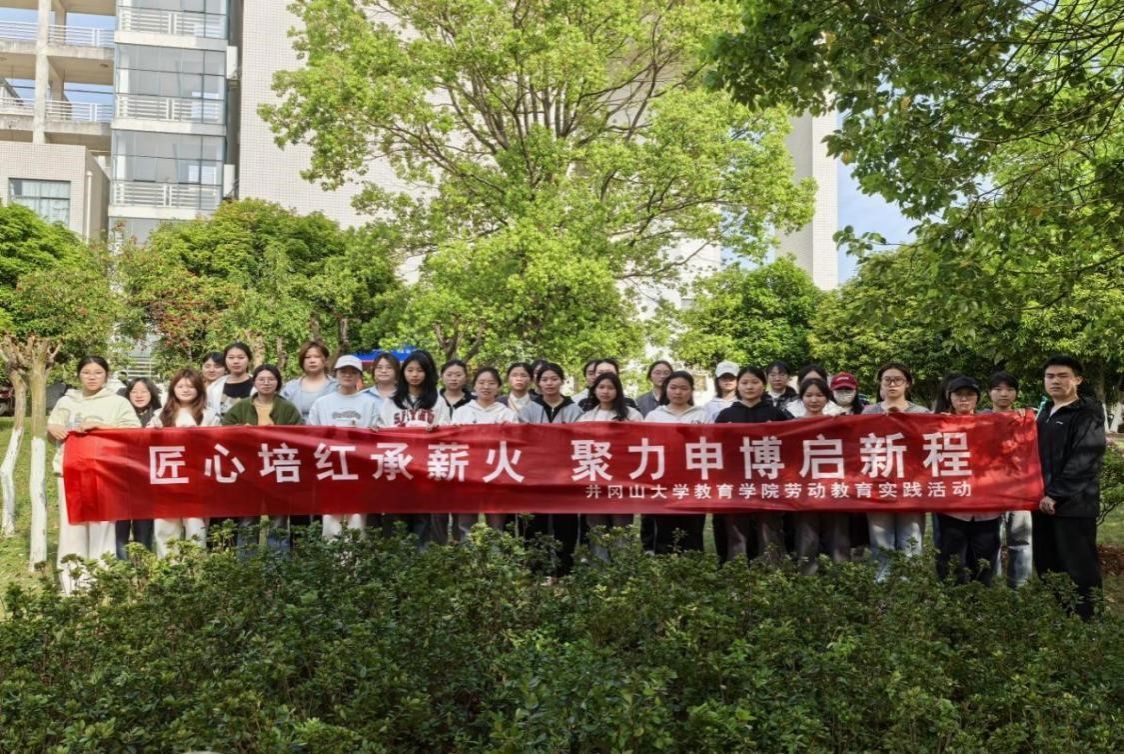 映山红花开,满园灿烂。为打造特色校园文化景观,美化校园环境,增强同学们的生态环保意识,传承红色文化,教育学院于4月3日下午在10栋教学楼旁开展了栽种映山红的劳动教育实践活动,此次活动共计有40名同学参加。