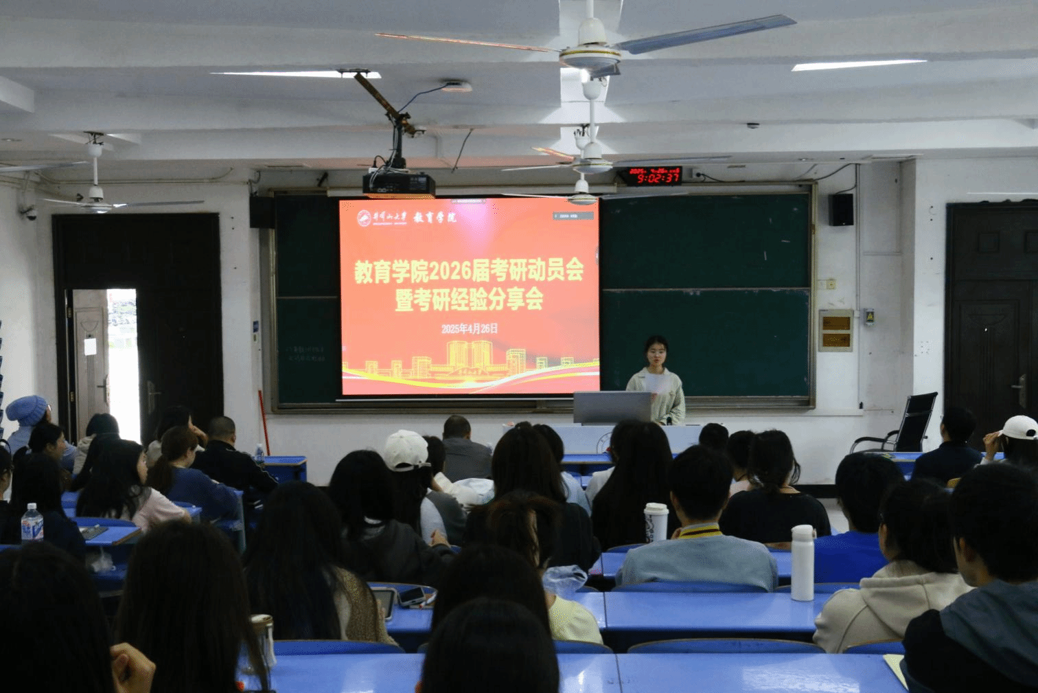 为激发2026届学生的考研热情,明确备考方向,提高备考信心。教育学院于4月26日通过线上与线下相结合方式召开2026届学生考研动员暨经验分享会。教育学院全体院领导、2022级班主任、2025届成功考研学生代表以及2026届全体考研学生共计110余人参加此次会议,会议由24小教1班张贝同学主持。