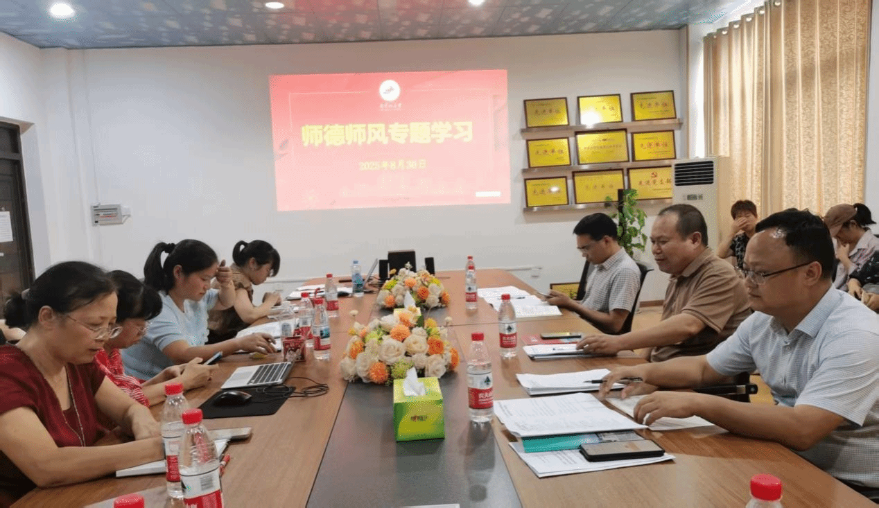 会议第一阶段开展政治理论集体学习。全体教职工深入学习新华社文章《永远做中华民族文明成果与人类和平事业的捍卫者—写在中国人民抗日战争暨世界反法西斯战争胜利80周年之际》,弘扬伟大抗战精神,凝聚奋进力量。会上还专题学习了《新时代高校教师职业行为十项准则》,进一步强化师德师风建设,引导教师恪守职业规范,落实立德树人根本任务。