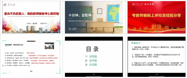 在考教师编分享会上,成功上岸的校友们围绕复习规划、心态调整、面试准备等进行了深入交流。在汕头市濠江区钱塘小学工作的2025届小学教育专业杨士颖校友建议科学搭建学习体系,分阶段明确目标;就职于深圳市龙华区民治中学的2025届小学教育专业魏斯婷校友强调:“实战比笔头功夫更重要”,提醒大家做好全面准备;在江门市江海区高新一小工作的2025届小学教育专业周紫璇校友则以“好的开始是成功的一半”,勉励学弟学妹尽早确立目标、制定计划,提高备考效率。