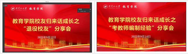 为充分发挥优秀校友的榜样作用,引导在校生明确发展方向,井冈山大学教育学院于9月12日晚和9月14日晚通过腾讯会议,先后举办了“校友归来话成长之退役校友分享会”和“校友归来话成长之考教师编制分享会”。