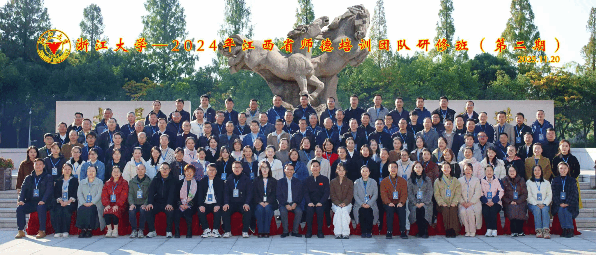 2025年11月20日,江西省师德培训团队研修项目井冈山大学班(第二期)在浙江大学顺利开班。初冬的杭州,虽丹桂余香渐远,但研修氛围正浓。学员们跨越赣浙两地,怀揣坚定初心,携手聚力同行。来自江西省各设区市、县(区)中小学校的师德师风业务负责人及工作骨干共122人齐聚浙江大学,共同参与此次以“淬炼师德素养、提升培训能力”为主题的学习研修,为新时代江西师德师风建设注入专业力量。