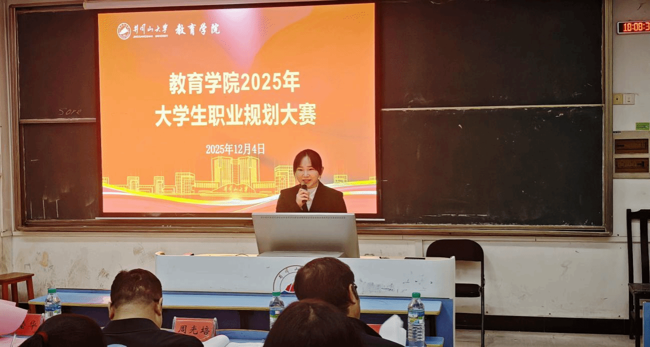 2025年12月4日晚,教育学院于9-309教室举办了“2025年大学生职业规划大赛”。本次大赛旨在引导学生树立正确的成才观与就业观,提升职业规划意识和就业竞争力。学院党委副书记周光培、应用心理学专业负责人罗润生教授等七位老师受邀担任评委。