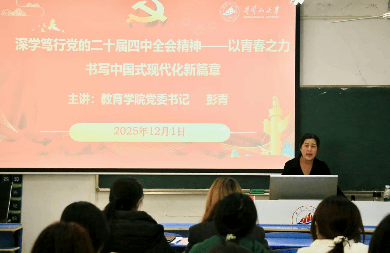 学院党委书记彭青在专题党课中阐述了党的二十届四中全会的重要意义,并结合教育、科技、人才等领域部署,强调教育在现代化建设中的基础作用,鼓励青年学生坚定理想信念、勇担时代使命,并向青年学子提出“深学”“笃行”“融入”三点期望,勉励大家将学习成果转化为勤学实干、服务社会的具体行动,把青春奋斗融入中国式现代化建设的宏伟征程。